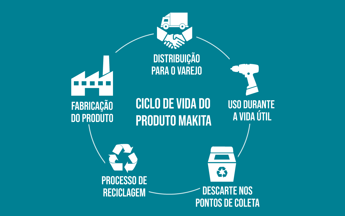 Como parte do nosso compromisso de contribuir na criação de uma sociedade sustentável, em conformidade com o Decreto nº 10.240/2020, a Makita participa do programa de logística reversa, uma importante iniciativa em prol de uma economia circular de recursos – abordagem que visa criar um ciclo contínuo de reutilização, reciclagem e regeneração. Trata-se de um sistema estruturado para a coleta e tratamento adequado de ferramentas, baterias, eletroeletrônicos e pilhas, no fim da sua vida útil.